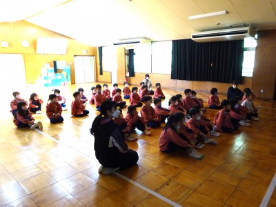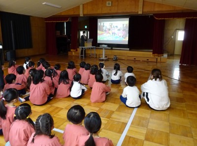 全体でなく各学年別に行ったので、それぞれの学年での行事や楽しかったこと、がんばったことを振り返ることができました。歓声をあげてスクリーンを楽しそうに見て、しっかり話も聞くことができました。