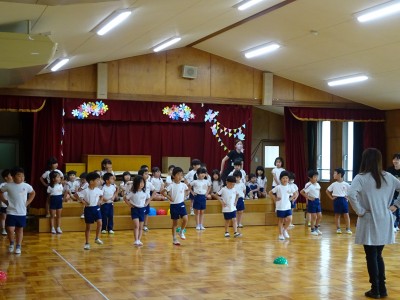 太鼓は、ト〇ト〇トマト〇、アイスクリーム〇の♩(4分音符)に加え、チョコレートの♪(8分音符)を使うの練習もしました。