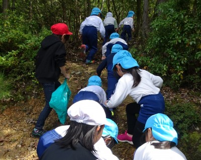 池内小学校との交流(年長) 2023年10月16日 10月16日(月)年長学年は池内小学校の1・2年生と2学期の交流をしました。 木々が秋らしくなった快晴の中、希望ヶ丘に一緒に登りました。 小学生に「ここにどんぐりあるで」と教えてもらったり「一緒に遊ぼ」と誘ってもらったりしました。 いつも幼稚園の友達と登っている希望ヶ丘でも、小学生と登るといつもと違う発見があり、とても楽しい時間になりました。