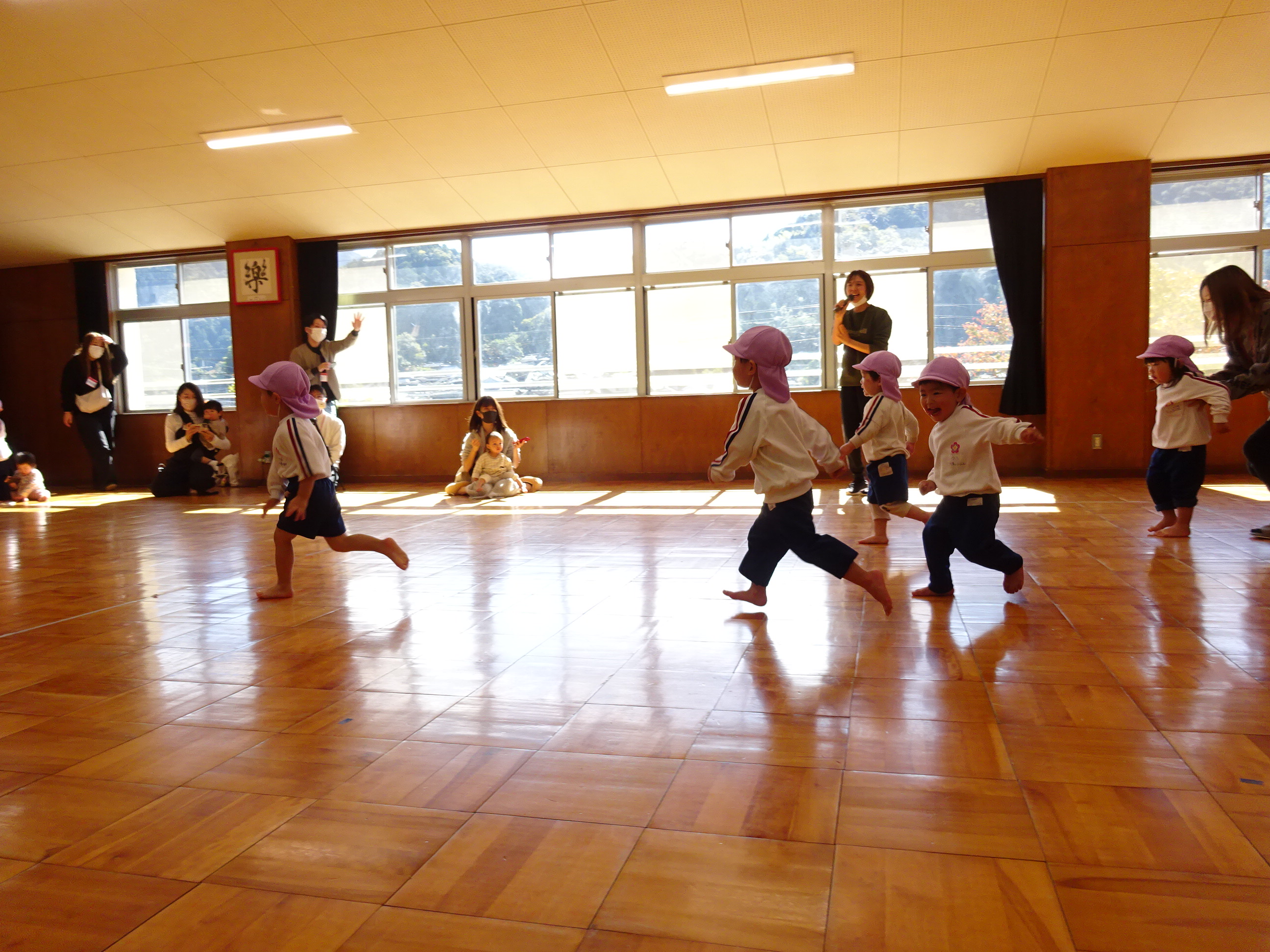 運動会ごっこ(満2歳・満3歳) 2023年11月2日 10月30日(月)はくるみ組、どんぐり組、31日(火)はつくし組の運動会ごっこを行いました。保護者の皆様には、たくさんご参観いただき感謝申しあげます。満3歳・満2歳、それぞれの発達に合わせた体を使った遊びを楽しみました。クラス別に遊戯室で行ったのでゆったりと子どものペースに合わせて運動会の雰囲気を味わわせることができました。保護者の皆様にも一緒にご参加いただく遊びも多く、子どもたちも嬉しそうでした。