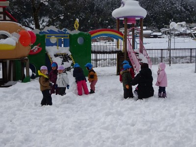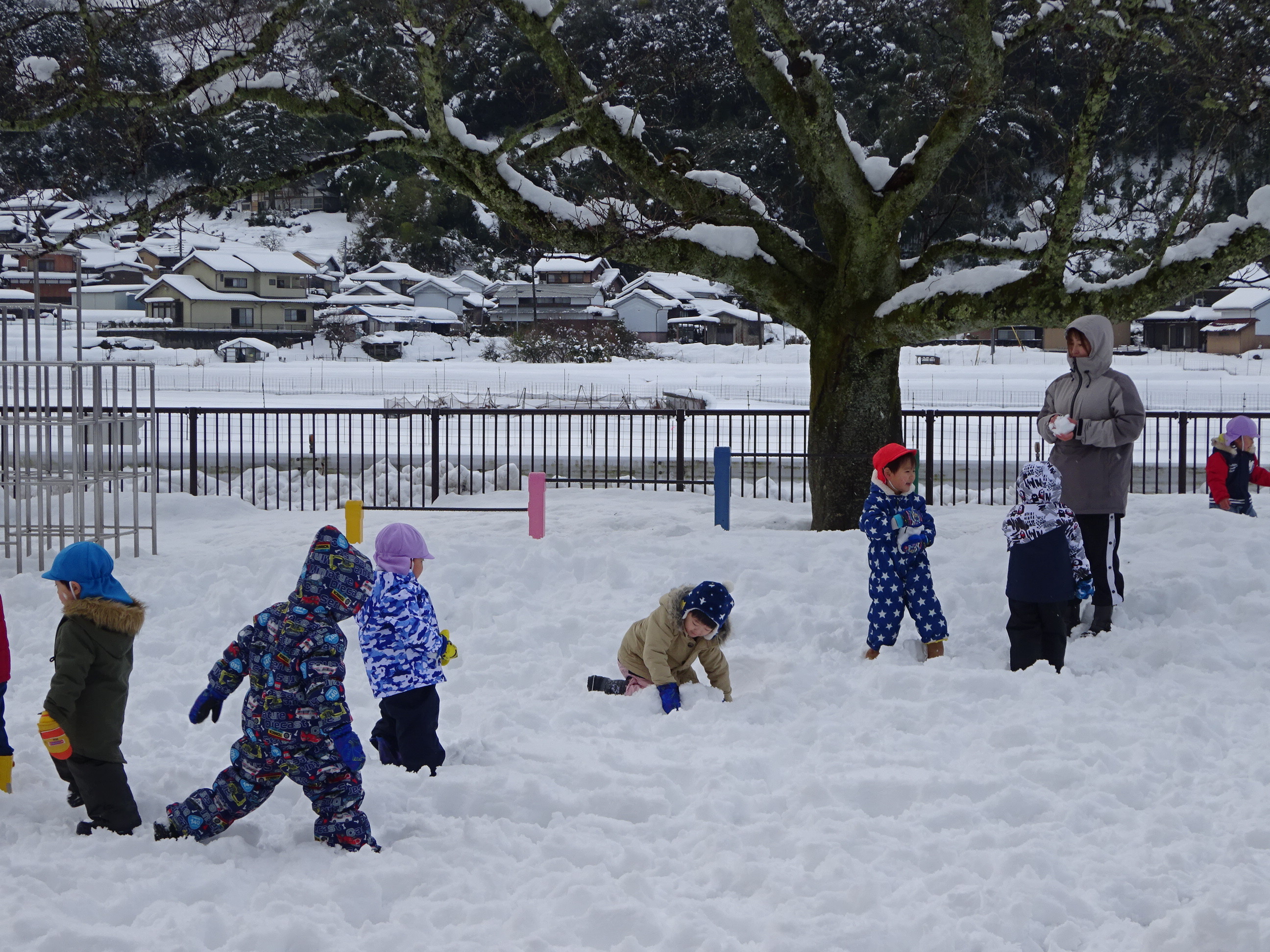 雪遊び 2024年1月26日 1月26日(金)は、雪遊びを全学年楽しみました。 24日(水)から積もった大雪に大人たちは悪戦苦闘した。雪かきをしたり交通事故を起こさないように気を付けたり不安の多い日々でした。しかし、子どもたちは今朝、一面に広がった園庭の雪景色の中、雪の感触を味わい、思いっきり雪遊びを楽しみました。