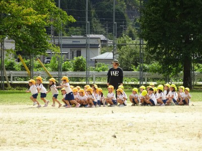 本番間近の運動会練習 2025年10月2日 運動会当日が近くなりました。過ごしやすい気候も増え、園庭や小学校グラウンドをお借りして練習をしています。練習は短い間ですが、とても上手になり自信を持って演技や競技をするする姿が頼もしいです。 また、学年の演技や競技を満3歳・満2歳や他の学年も興味深く見学して応援している姿も印象的です。