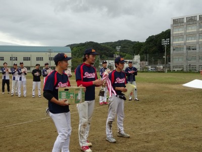 PTAソフトボール大会 2025年10月20日 10月19日(日)両丹私立幼稚園連合会PTAソフトボール大会を中舞鶴市民グラウンドで開催しました。両丹私立幼稚園協会の各園からPTAソフトボールチームが参加しました。 池内幼稚園チームは、午前中に1回戦、2回戦を勝ち進みました。午後からの決勝戦でも声をかけあい、チームワークのよさを発揮し、見事優勝に輝きました。選手の皆様、お疲れさまでした。