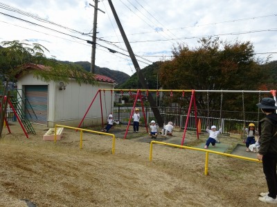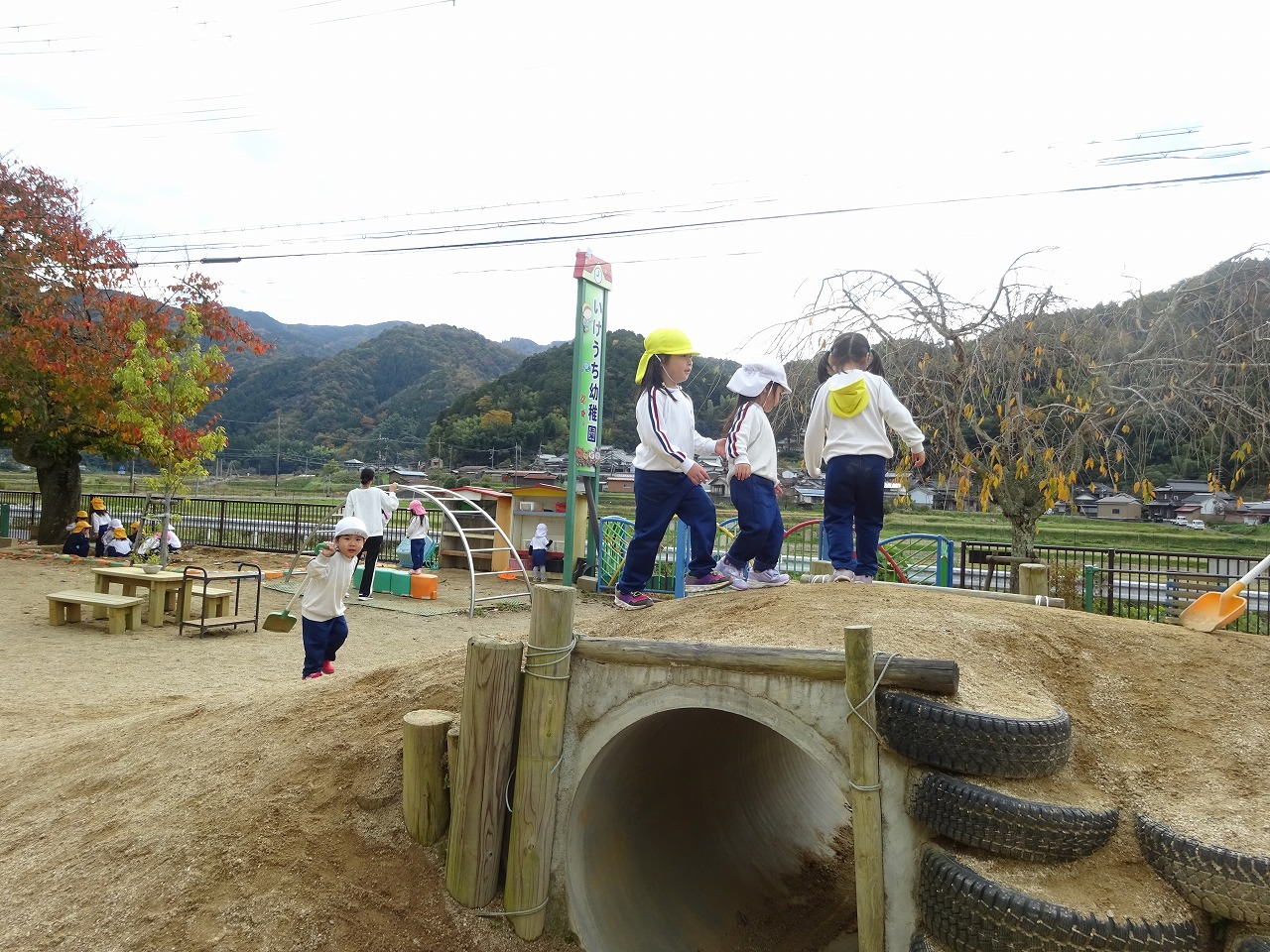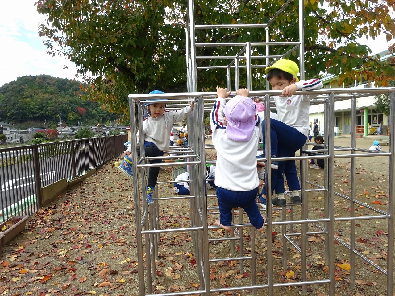 過ごしやすい季節になり、秋晴れの日は園庭遊びで賑わっています。好きな遊びを選んで満2・満3.年少・年中・年長で仲よく遊んでいます。