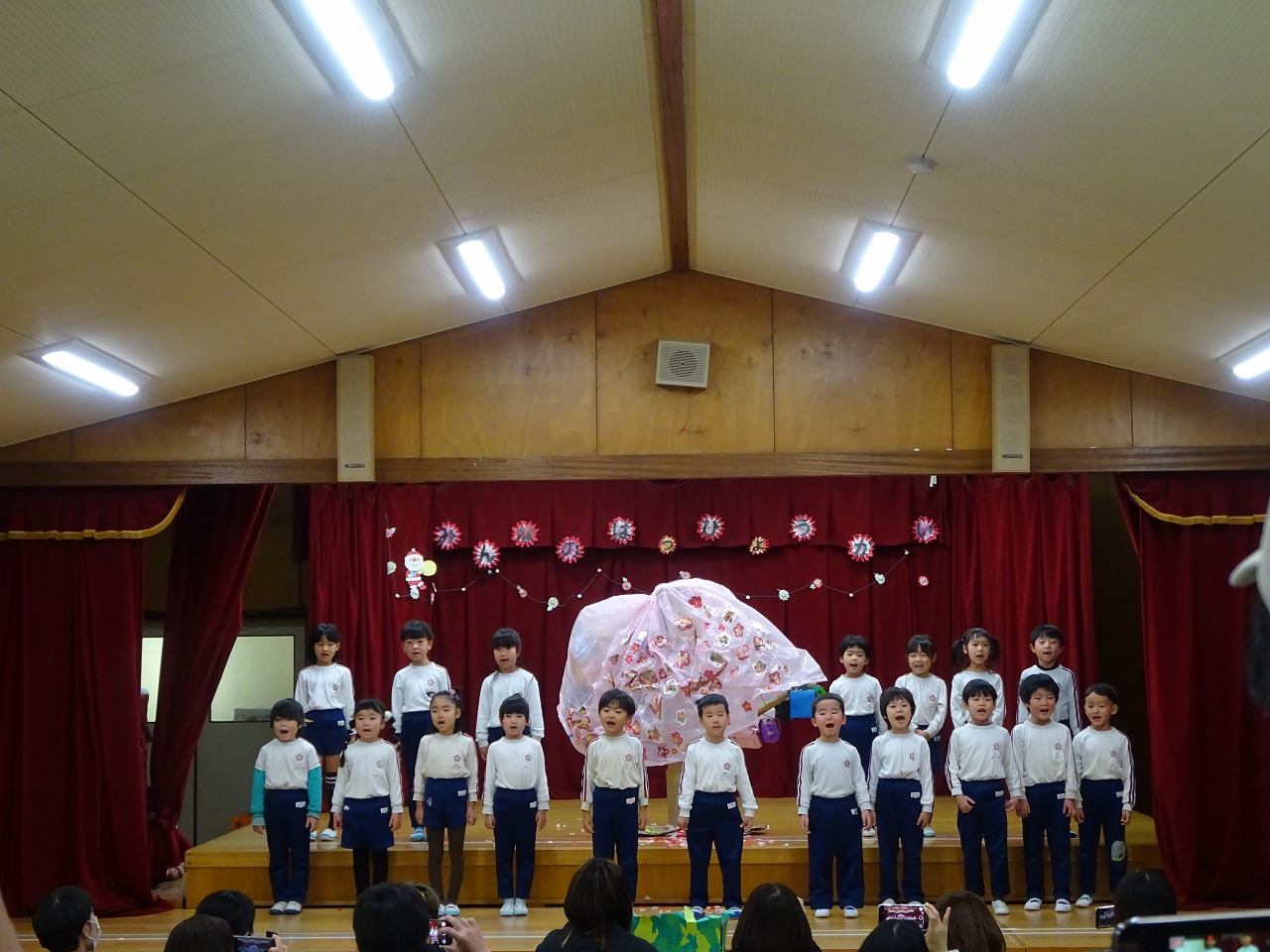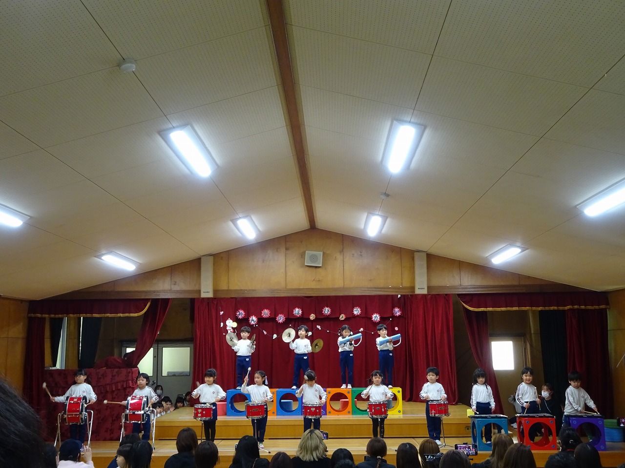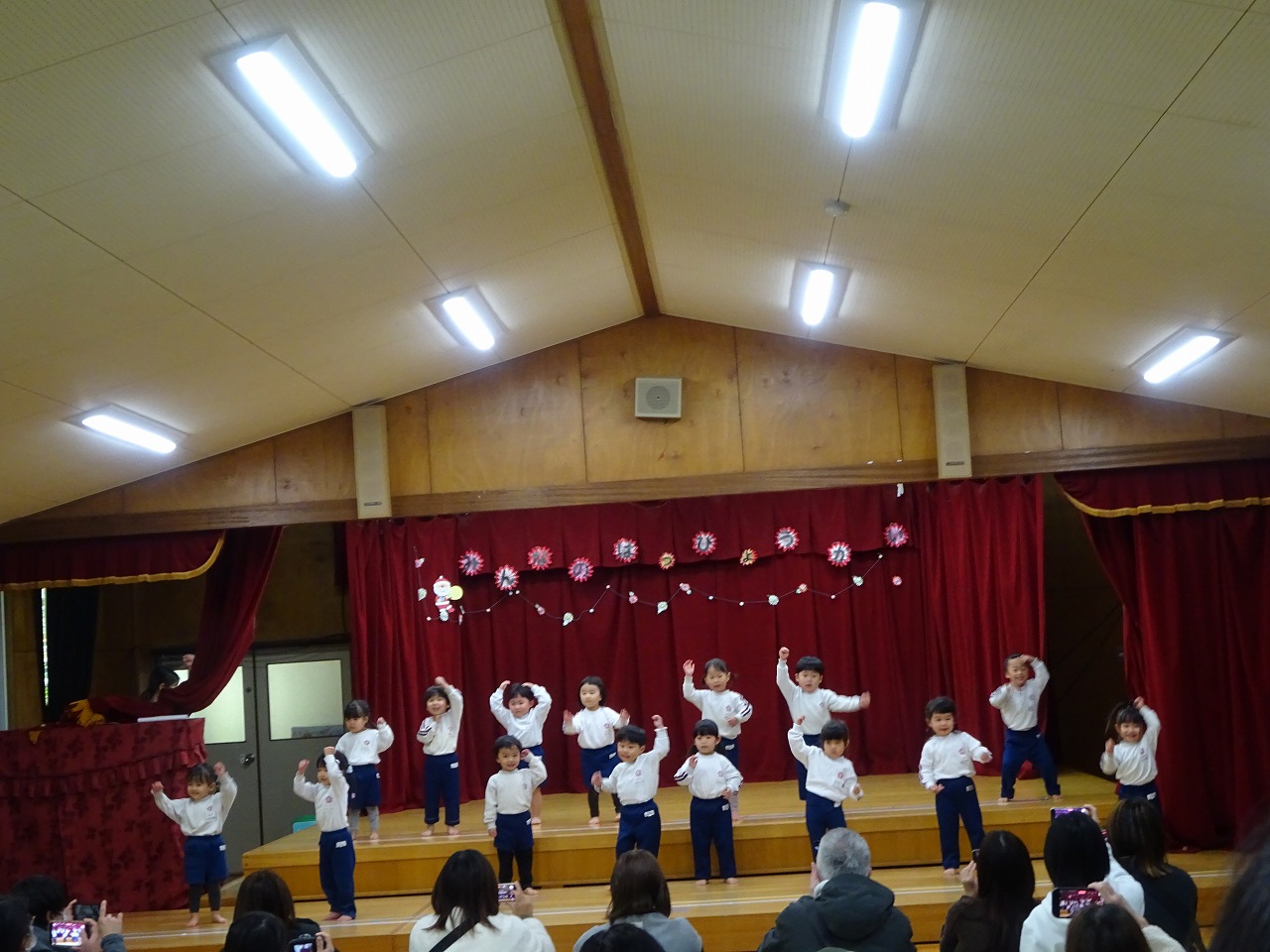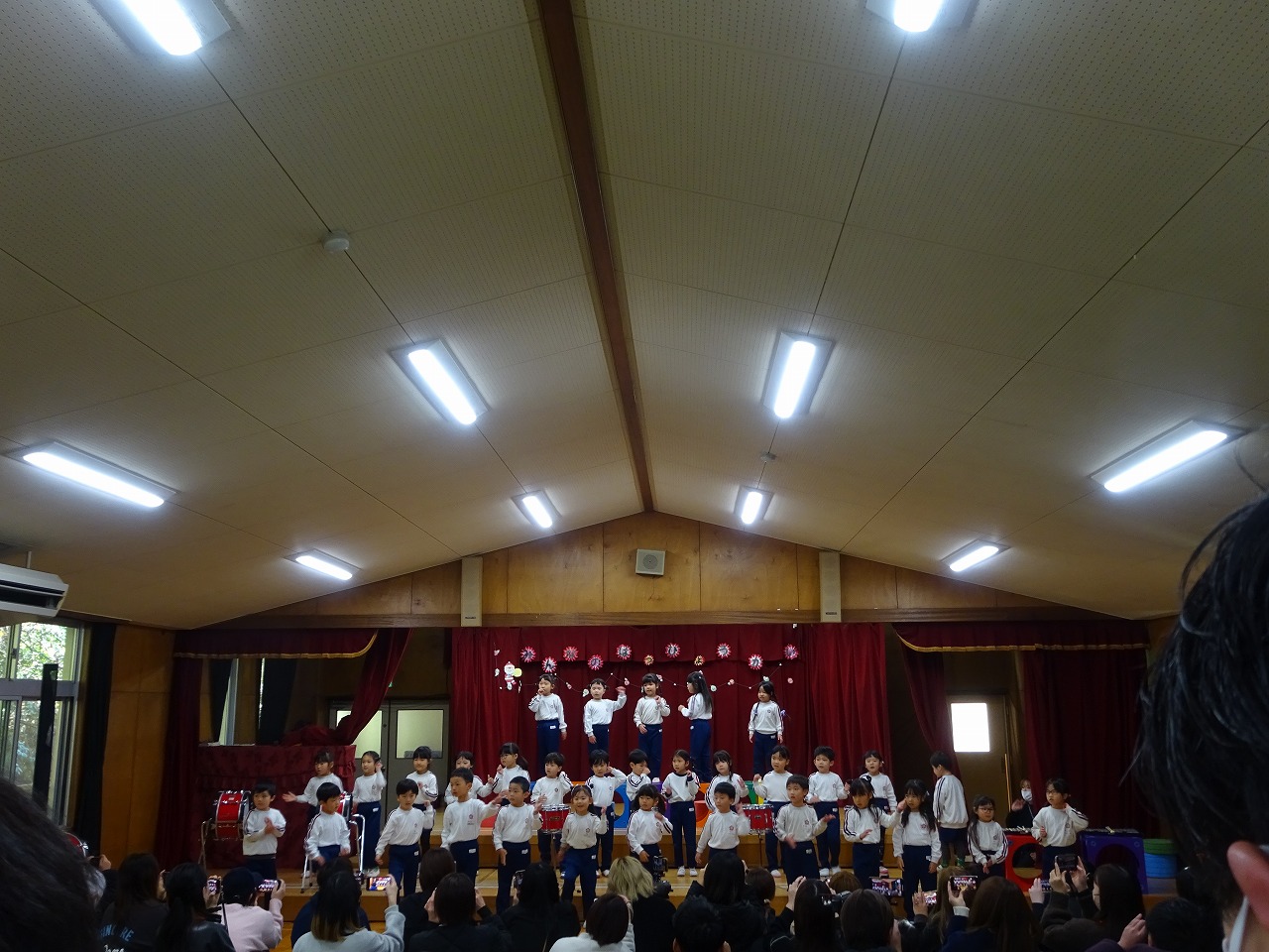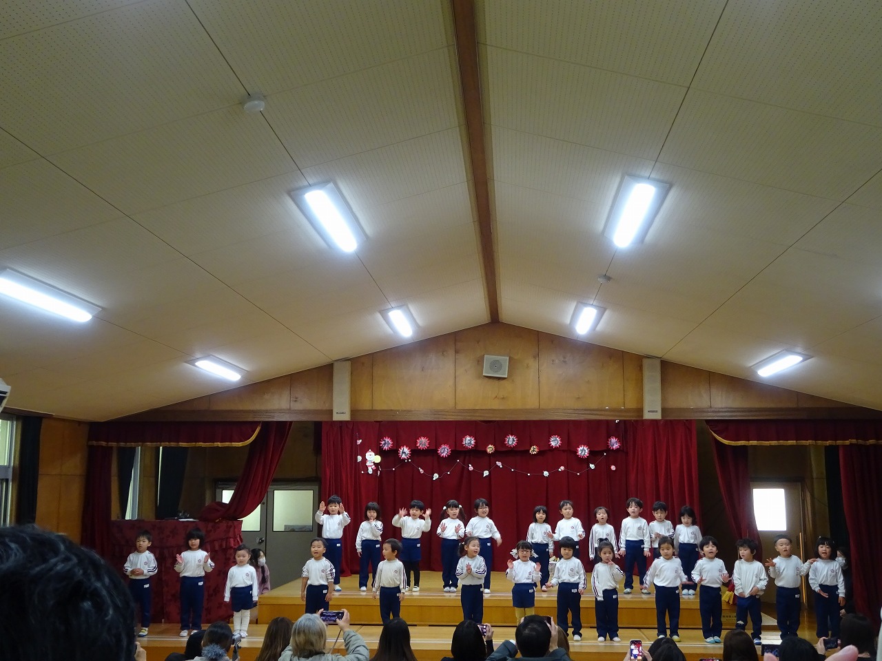 みんなの発表会 2025年12月17日 12月13日(土)みんなの発表会を行いました。学年ごとに手遊び歌やリズム遊び、歌、劇遊び、体操を発表しました。たくさんのお客様の前で練習してきたことに自信を持って発表しました。