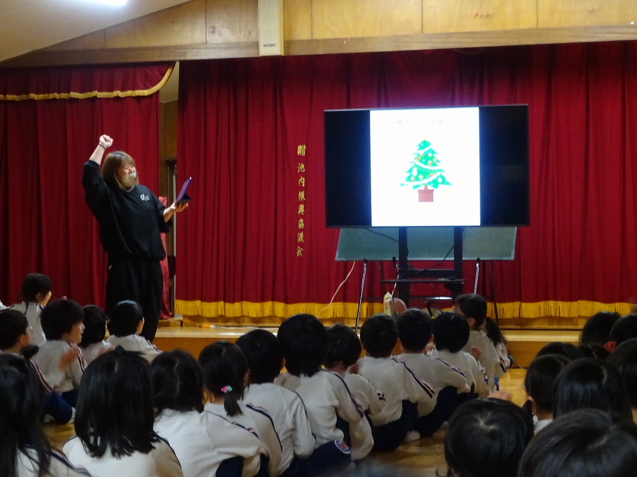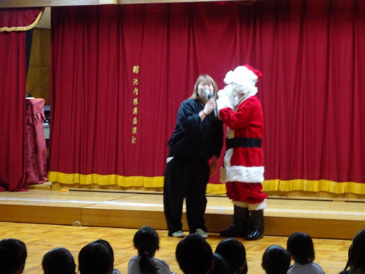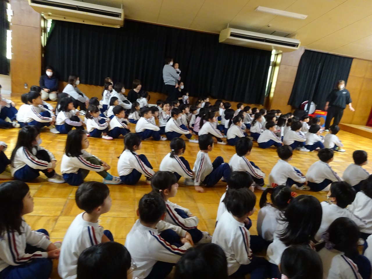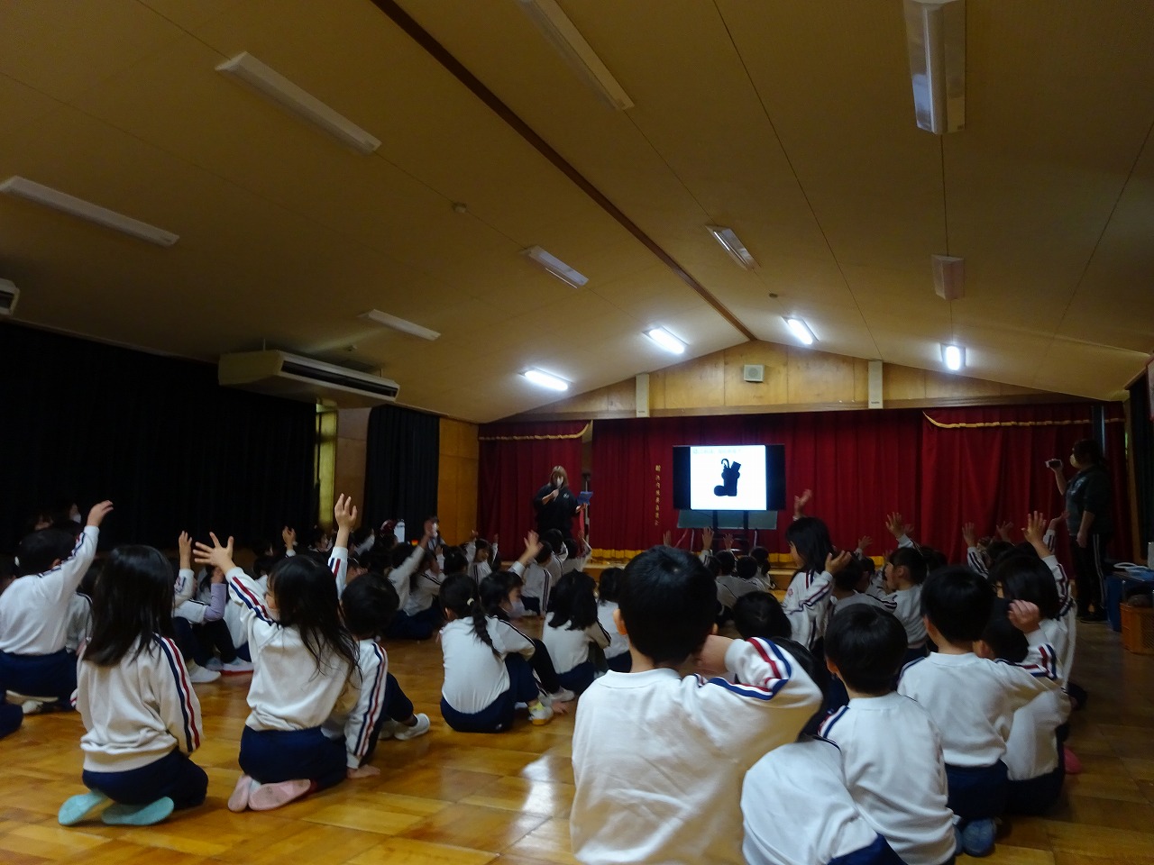 クリスマス会 2025年12月22日 12月19日にクリスマス会を行いました。あわてんぼうのサンタクロースの歌を歌い、シルエットクイズやブラックシアターをして盛り上がった後、どこからか鈴の音が聞こえてきました。なんとサンタクロースが園まで来てくれたのです。サンタクロースは、子どもたちにゆっくりと優しく対応していただいたので、満2歳~年長学年まで誰一人泣くことなくプレゼントを受け取りました。子どもたちは、お礼に歌のプレゼントをしました。「次の幼稚園の子どもたちも待っているから」とお別れの時間になると手を振って見送りました。