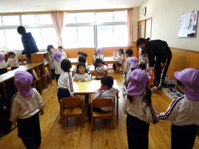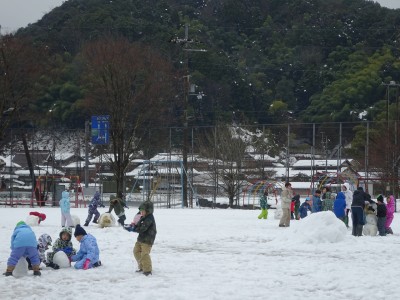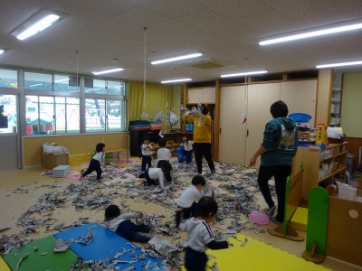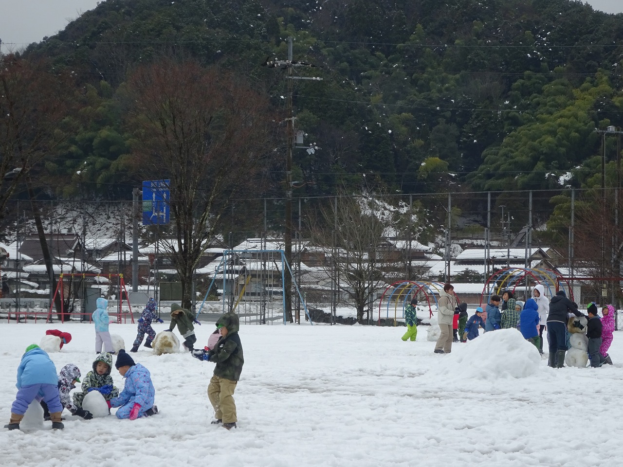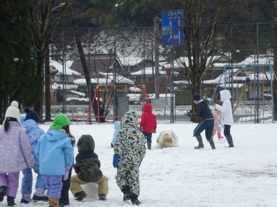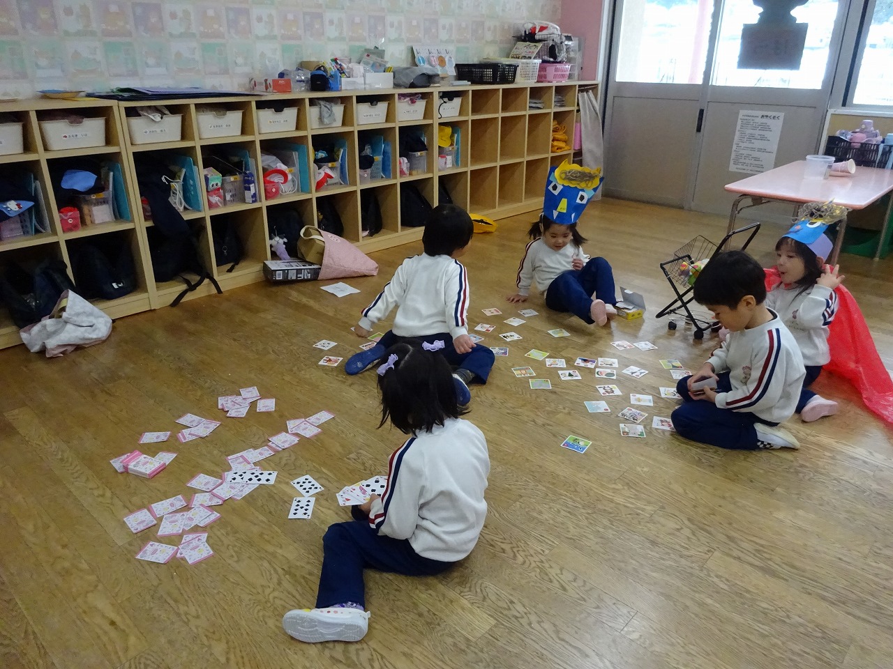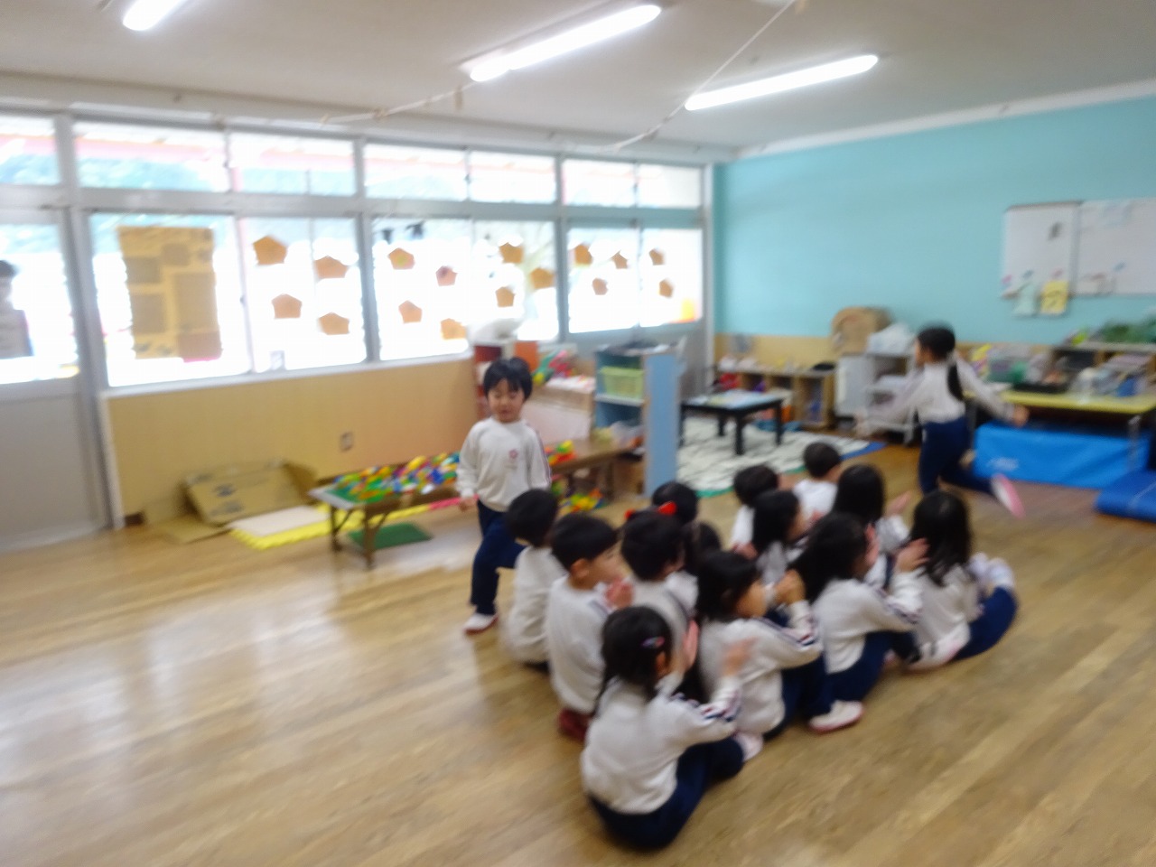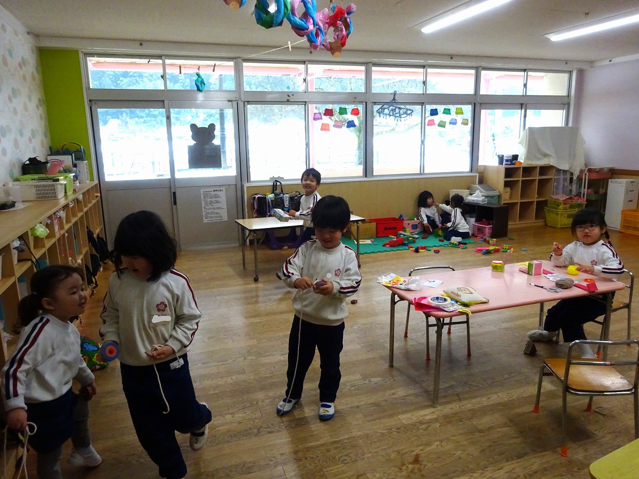 幼小連携交流 各部屋での活動 2026年1月28日 1月28日(水)は、また雪が降る寒い日でした。しかし、年長は池内小学校との交流で1・2年生と一緒に広いグラウンドで思い切り雪遊びを楽しみました。他の学年は、各部屋での活動を楽しみました。