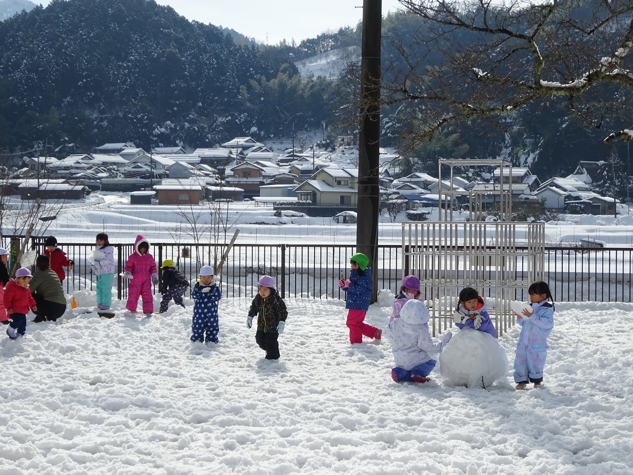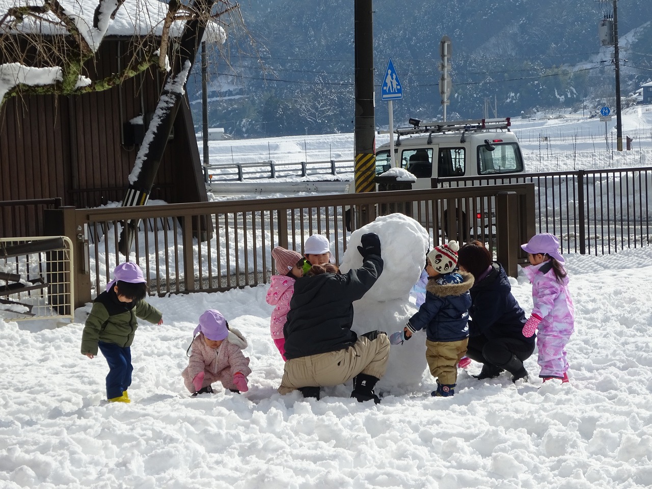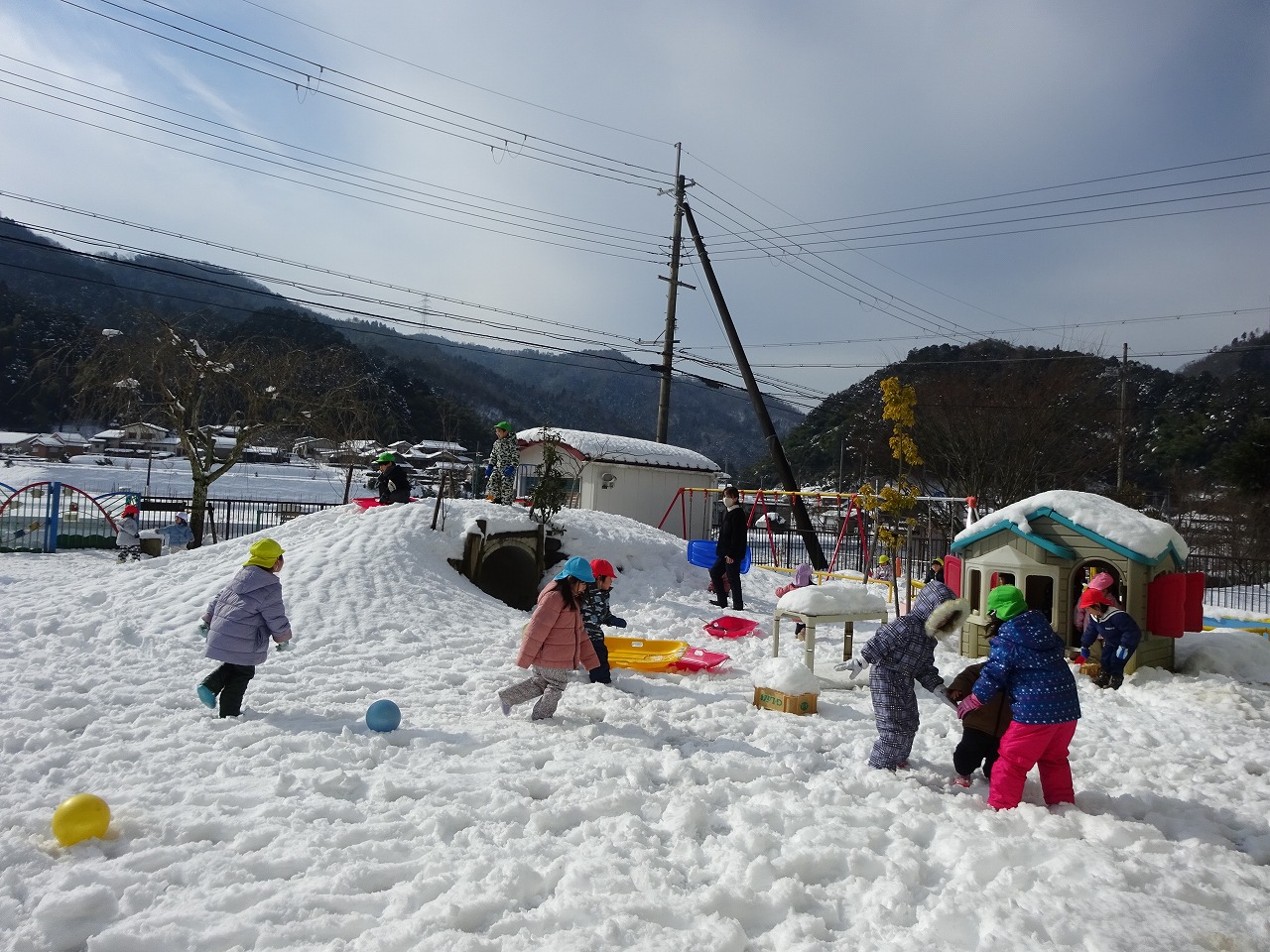 雪で遊ぶ 2026年2月10日 2月10日(火)はやっと晴れました。そこで、園庭に出て、たくさん積もった雪で思い切り遊びました。大人はの雪かきや道路状況の悪さによる交通事故の心配で追われましたが、子どもたちはたくさんの雪を満喫しました。