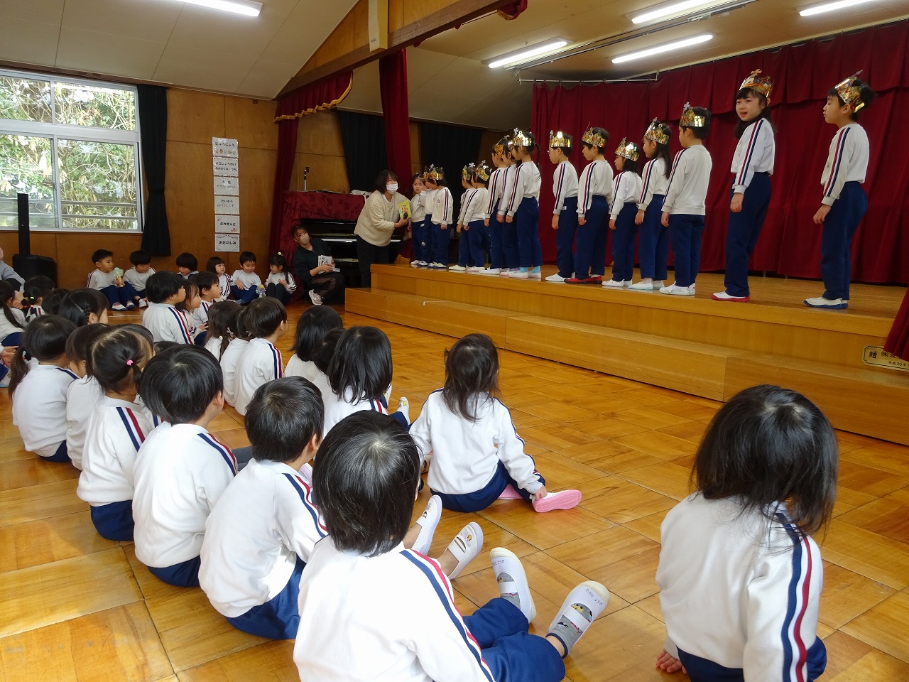 2月12日(木)、延期になっていた12・1月の誕生会を10時から、2月の誕生会を10時30分から行いました。