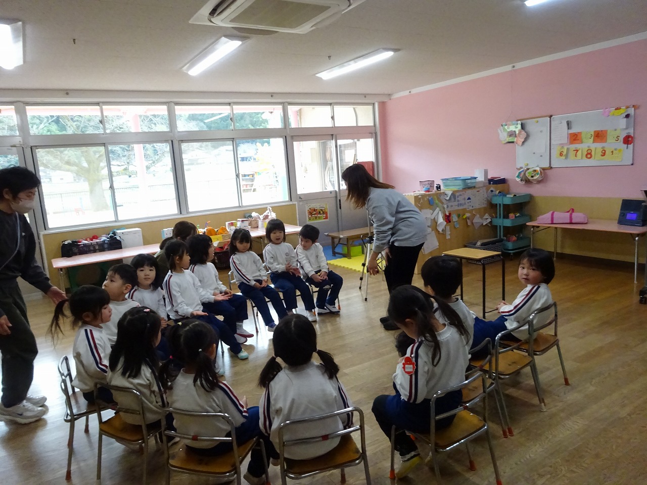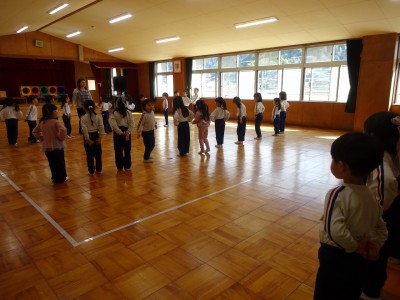 ドレミファランド 2026年2月19日 2月19日(木)年少・年中・年長学年がドレミファランドをしました。年少は、リズム遊び、年中はリズムに合わせて歩幅や向きを考え歩く練習、年長は卒園式に向けての歌の練習をしました。子どもたちは、緊張する場面があったり楽しむ場面があったりして音楽に親しみ、上手になろうとする意欲を高めました。