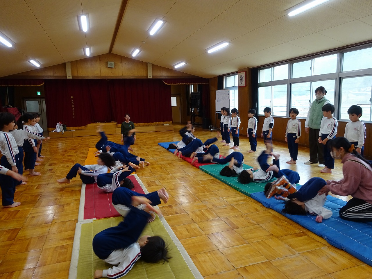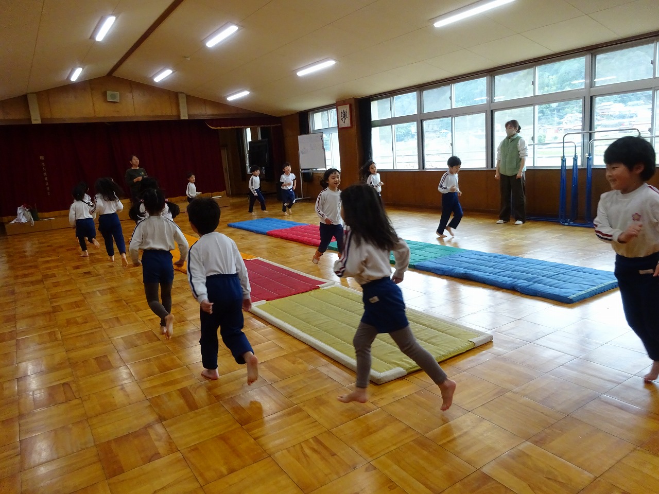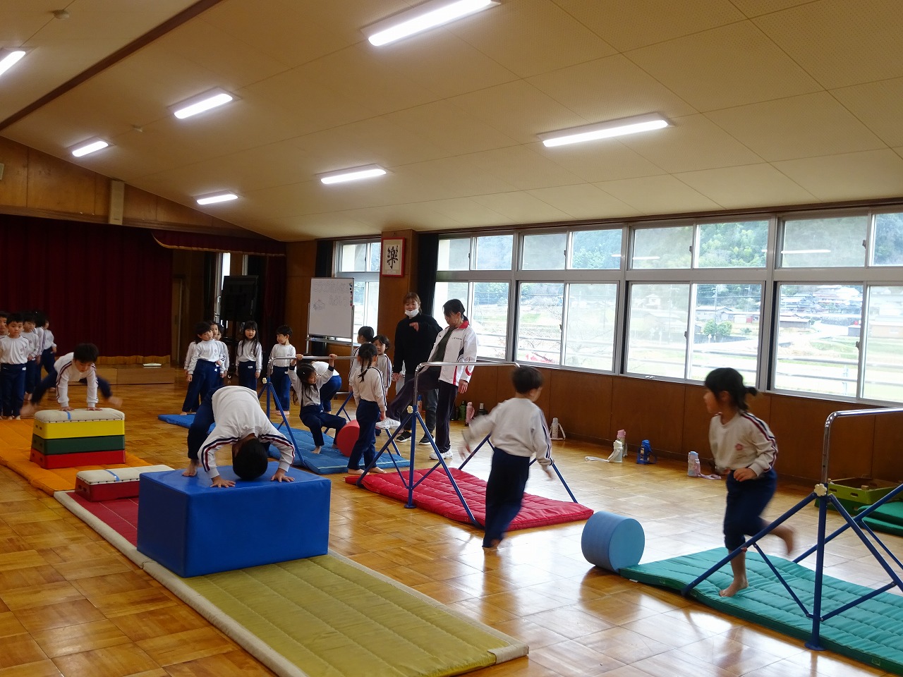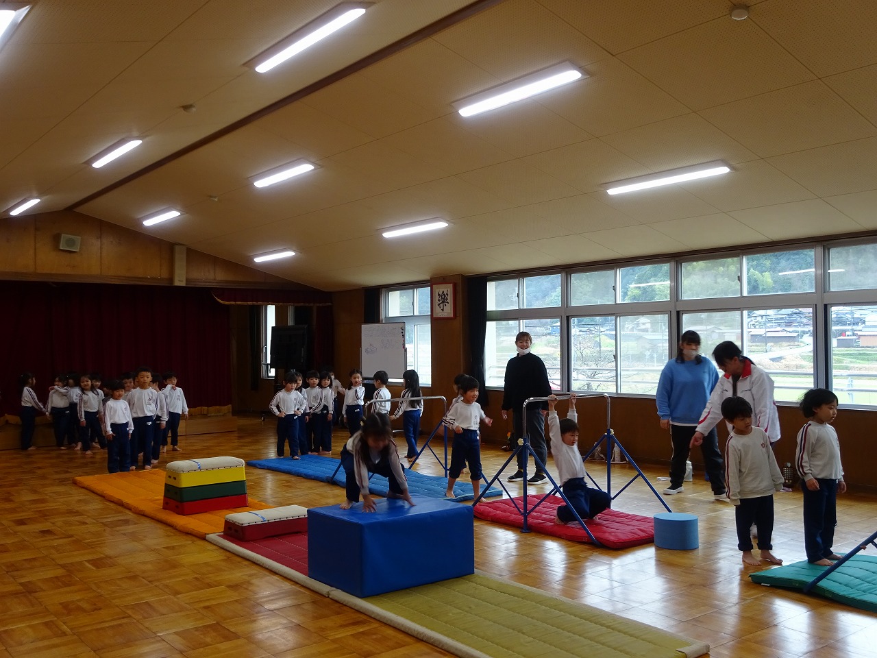 3月4日(水)わくわくランドをしました。年長・年中・年少学年が講師の先生にお世話になり鉄棒遊びや跳び箱遊び、マット遊びを楽しみました。