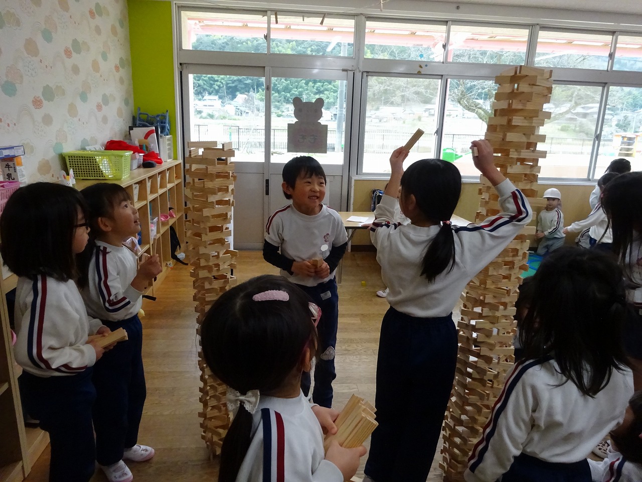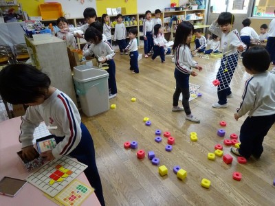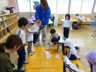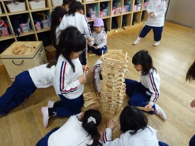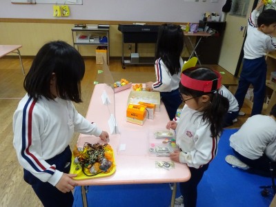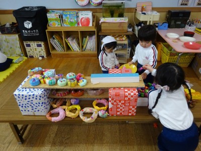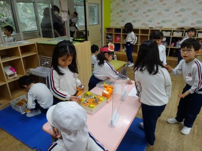 全学年でなかよし遊び 2026年3月11日 3月6日(金)に年長・年中・年少・満3・満2の全学年でなかよし遊びをしました。 ゆり組・きく組・もも組・ばら組を会場にして、たくさん設置された遊びのコーナーから遊んでみたいコーナーに行って楽しみました。そこに集まった異年齢の子どもたちは自然に声をかけたり、お兄さんお姉さんは下学年に優しくしたりする様子が見られました。学年末の3月の良い思い出となりました。